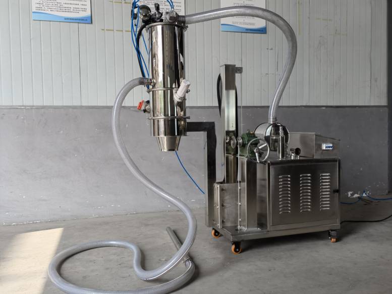 SF系列移動式真空上料機由真空泵(無油、無水)、不銹鋼吸料槍、輸送軟管、過濾器、壓縮空氣反吹裝置、氣動放料門裝置、真空料斗和自動化控制系統(tǒng)等組成,整套系統(tǒng)設(shè)計合理、制造精美。真空加料機分間隙排料和連續(xù)排料兩種,間隙排料有利于降低設(shè)備的投資成本,方便料位控制。連續(xù)排料一般用在長距離、大產(chǎn)量時對物料的真空輸送。